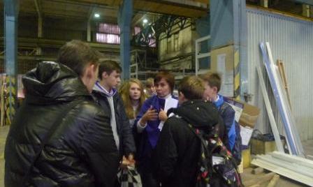 Затем экскурсовод пригласила школьников в цех, где рассказала об основных сферах деятельности завода: выполнение строительных, монтажных, ремонтных услуг, строительство объектов социальной инфраструктуры (больницы, школы, детские сады).
