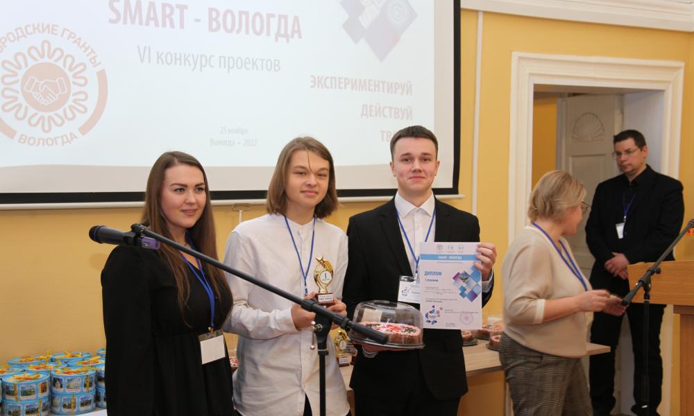 3 место – МАОУ «СОШ № 7» (г. Череповец). Проект «Комфортная городская среда – для всех» (места отдыха и общения для людей с ОВЗ). Беляев Дмитрий Анатольевич, Гущина Дарья Сергеевна, Гусева Майя Евгеньевна, Новикова Полина Ивановна, Шипицина Анастасия Александровна. Руководитель проекта – Костина Ирина Николаевна.