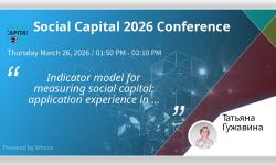 24–26 марта 2026 года состоялась I конференция Международной ассоциации социального капитала (ISCA) «Social Capital 2026». В ее работе приняли участие исследователи из Индии, Новой Зеландии, Индонезии, Пакистана, Греции, Англии, США, ОАЭ, Ирана, Австралии, стран Африки и др. Россию и Вологодский научный центр РАН представила в.н.с. к.философ.н. Татьяна Анатольевна Гужавина. Она поделилась опытом построения и применения индикаторной модели измерения социального капитала в территориальном сообществе на основе данных, полученных в ходе мониторинговых наблюдений, которые ведутся Центром с 2016 года.